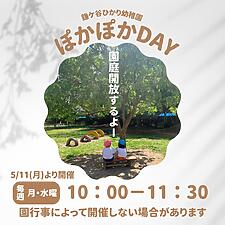 イベントのお知らせ鎌ケ谷ひかり幼稚園より園庭解放「ぽかぽかDAY」開催のお知らせです。2026/04/13new幼稚園や保育園からいただいた子育て支援情報をこちらでも発信します! 今回は「鎌…